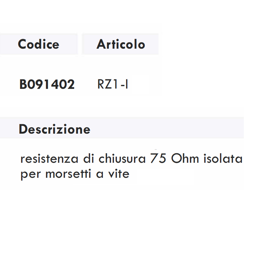 RZ1-I RESISTENZA 75 Ohm ISOLATA PER MORSETTI A VITE CBVICKY