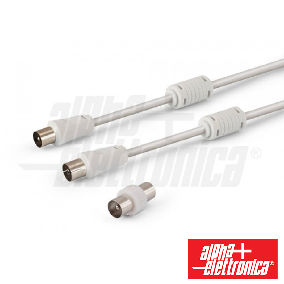 CAVO TV M - F BIANCO CON ADATT. M - M 2mt CON FERRITE ALPHA EL